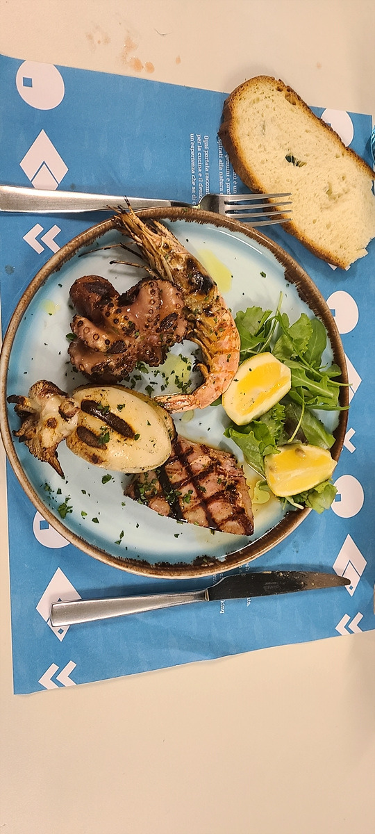구시가지로 다시 나가니 나처럼 저녁식사를 하기 위해 나온 사람들이 아주 많았다. 호스트가 추천해 준 식당은 전부 로컬 인기장소인지 월요일인 오늘도 모두 만석이다. 느낌이 오는 적당한 곳을 골라 테라스에 앉았다. 저녁인데도 그닥 춥지 않아서 오랜만에 바깥에서 먹게 되었다. 라비올리와 모듬 해산물 구이를 주문했다. 오늘은 문어를 두 번이나 먹었더니 문어는 이제 그만 먹어도 될 것 같다. 마무리로 라떼마끼야또를 하나 주문했는데, 에스프레소만 있다고 해서 커피는 안 마셨다. 현금이 아직 좀 남아서 소진하려고 그걸로 계산했다.