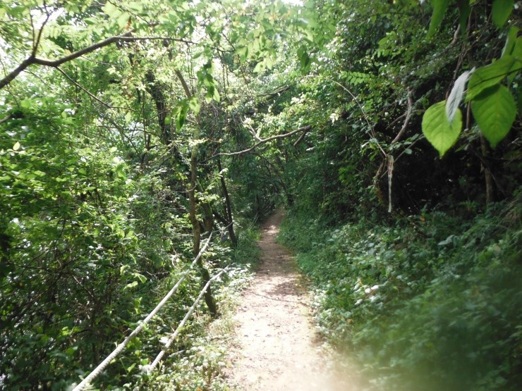북한강을 따라가는 화천 산소길의 좌안은 깨끗한 자전거길이 갑자기 끊어지면서 등산로 같은 비포장길이 나옵니다. 경사는 별로 없는 길이지만 산악자전거 기술이 없다면 끌고 가야 합니다.