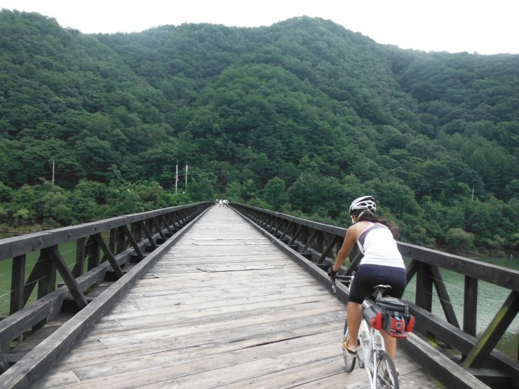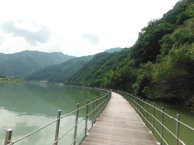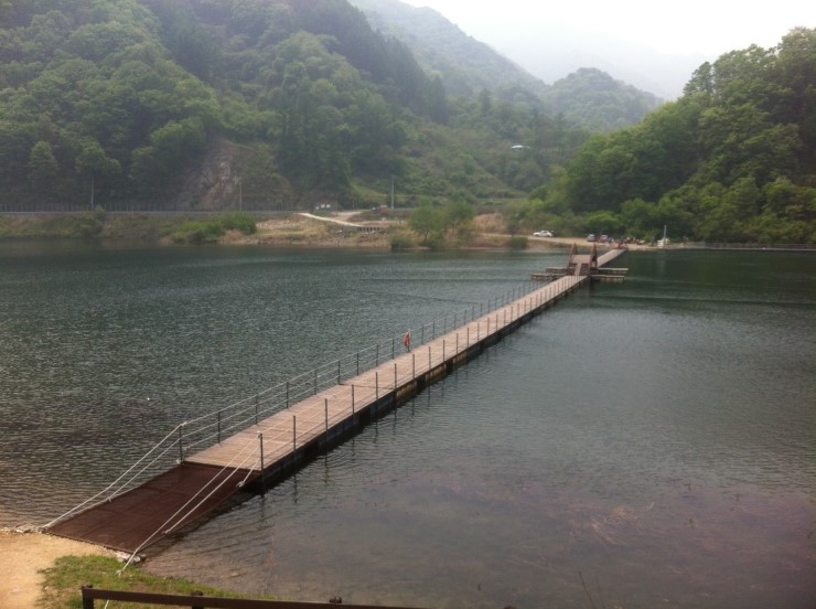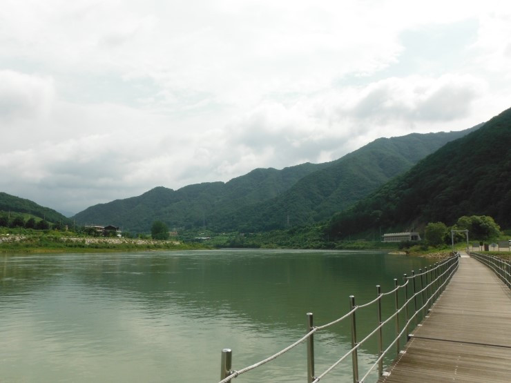 원래는 이렇게 생긴 다리가 화천 시내 쪽에 하나, 상류에 하나 있어서 자전거나 도보로 강을 건널 수 있게 해놓습니다.