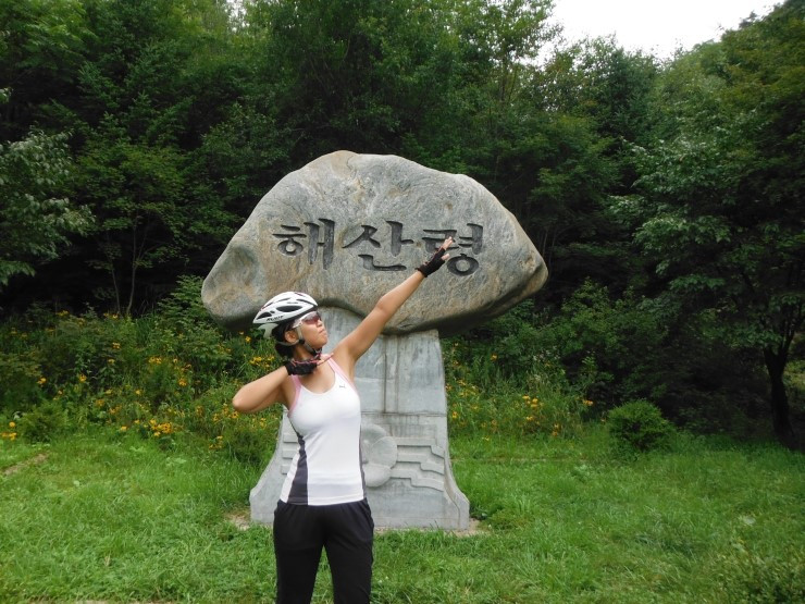 해산터널을 지나면 있는 해산령 표지석 앞에서도 인증샷을 찍어줍니다.
