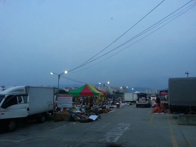 남대천에 새벽시장이 열리니 식당도 있을 듯해서 가봅니다. 농산물 새벽시장 옆에 발을 쳐놓은 식당차가 와있네요.