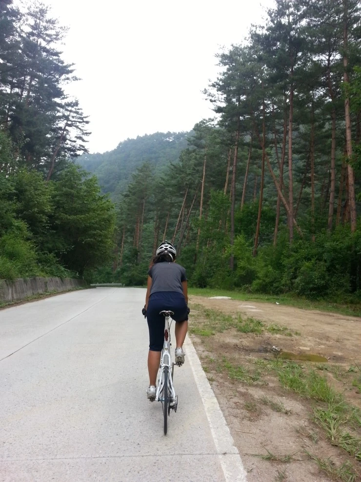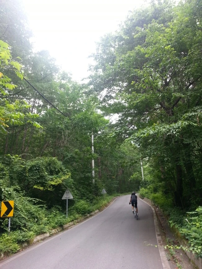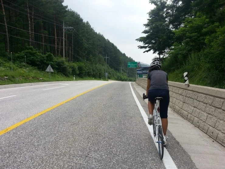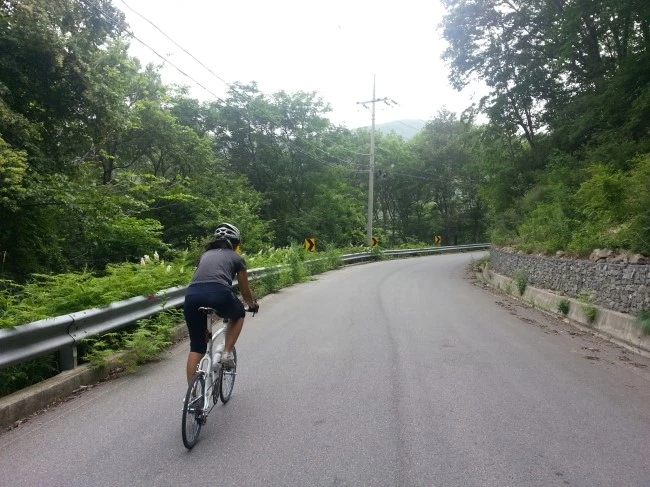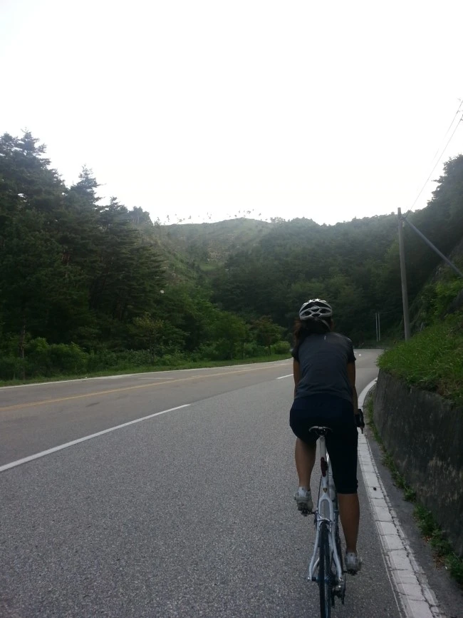 굽이굽이 힘든 오르막길을 타다 끌다를 반복합니다.