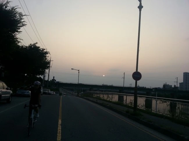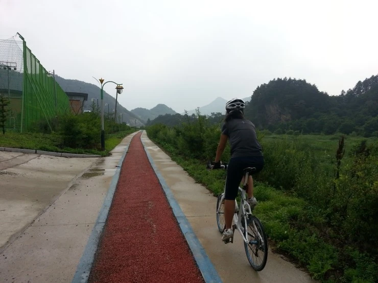 시멘트길이라 물이 금방 빠져서 옷과 자전거가 엉망이 되진 않아 다행이네요.