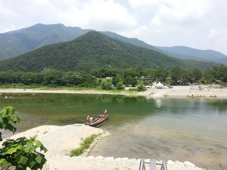 여기는 줄로 당겨서 배를 움직이는 아우라지 선착장입니다.
