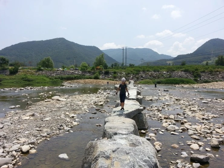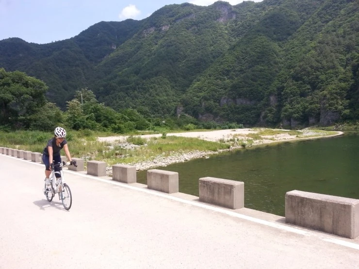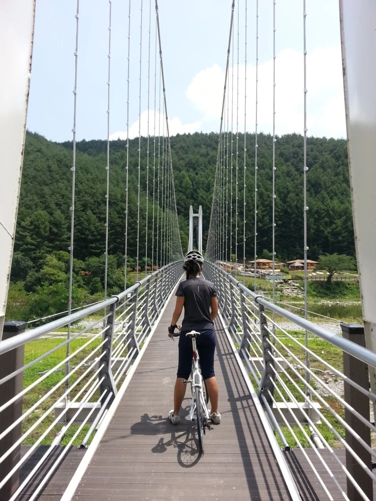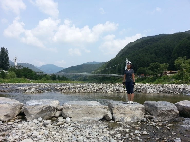 다시 징검다리를 건너와서 자전거로 아우라지 주변을 한 바퀴 돕니다.