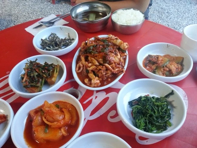 잠도 못 자서 입이 깔깔한데도 맛있는 오징어볶음과 풍성한 반찬들입니다.