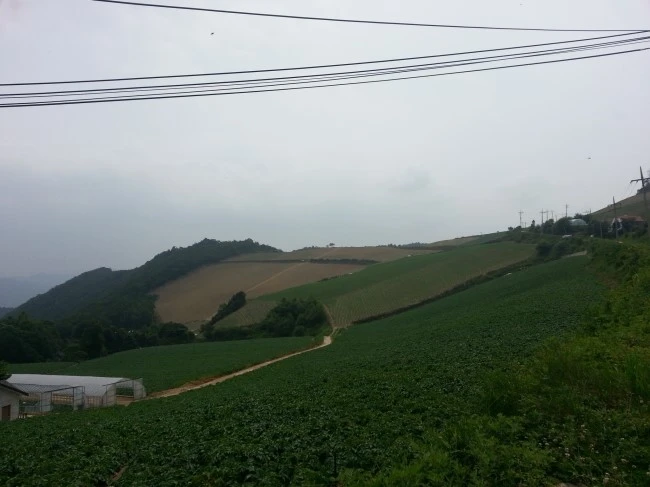 뒤에 보이는 건물은 감자원종장입니다. "감자를 주식으로" 라고 쓰여 있더군요.