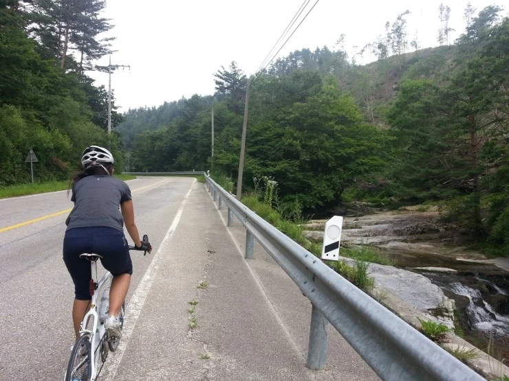 내리막이 많아서 페달링을 안 해도 어느 정도 속도가 나옵니다.