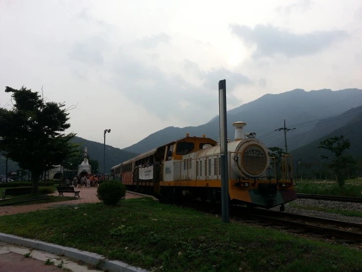정선 풍경열차입니다. 레일바이크를 탈 때 이걸 타면 뒤에 레일바이크도 줄줄이 달고 가서 구절역에서부터 레일바이크를 타고 돌아오는 시스템인가 봅니다.