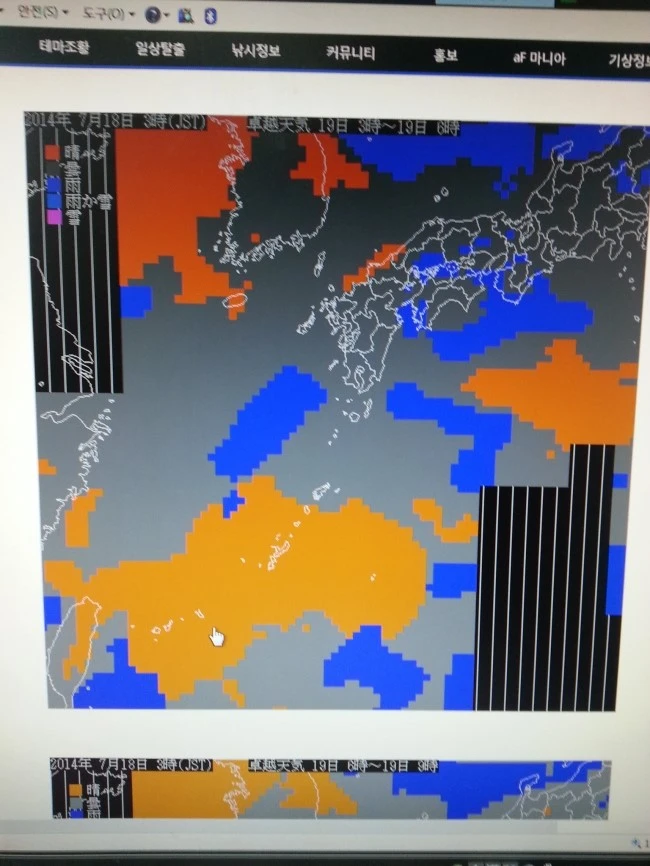 관건은 날씨였는데 날씨 보러 가끔 가는 낚시 사이트에 링크된 일본 기상청의 일기예보를 보았더니 비는 거의 안 올 듯해서 출발합니다.