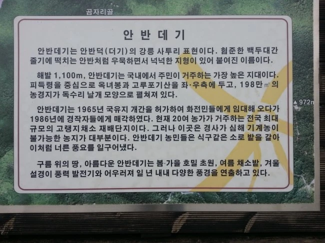 안반데기에 대한 지도와 설명도 있네요.