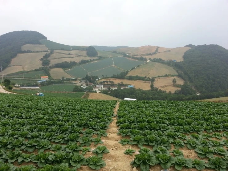 경사가 심한 고랭지에 채소밭이 펼쳐집니다. 농기계가 못 들어가서 아직도 소로 밭을 일군다고 하네요.