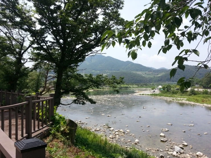 연리목 앞 개병교에서 본 풍경입니다. 강물이 넓어지기도 좁아지기도 하면서 풍경이 시시각각 바뀝니다.