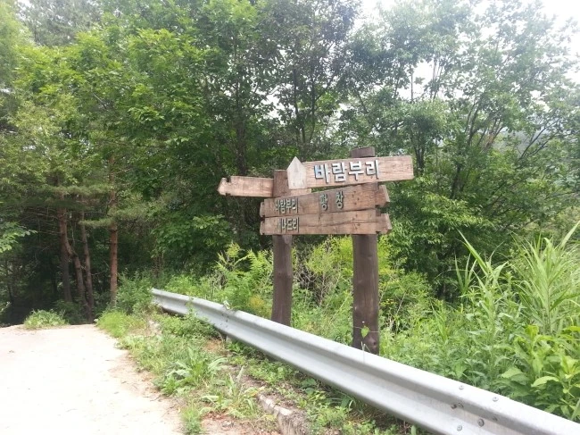 강릉 쪽에서 올라가는 입구입니다. 감자원종장 바로 옆길로 올라가면 됩니다.