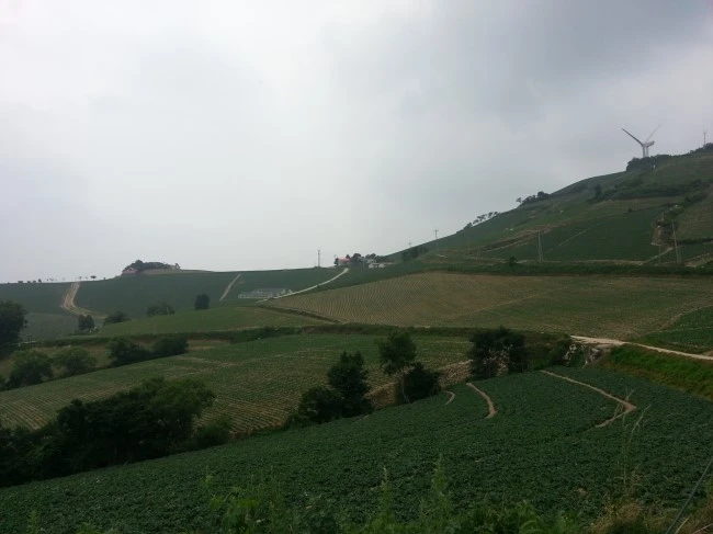 대관령 넘어서부턴 평창군 횡계입니다. 대관령 휴게소의 풍력발전기도 보이는군요.