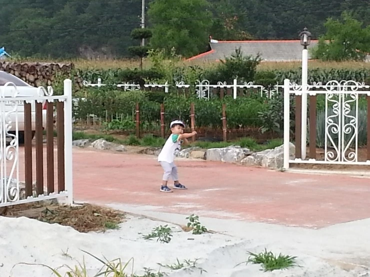 시골집에 꽃나무들이 담 대신 경계를 지키고 있습니다. 이뻐서 한 컷 찍어줍니다.