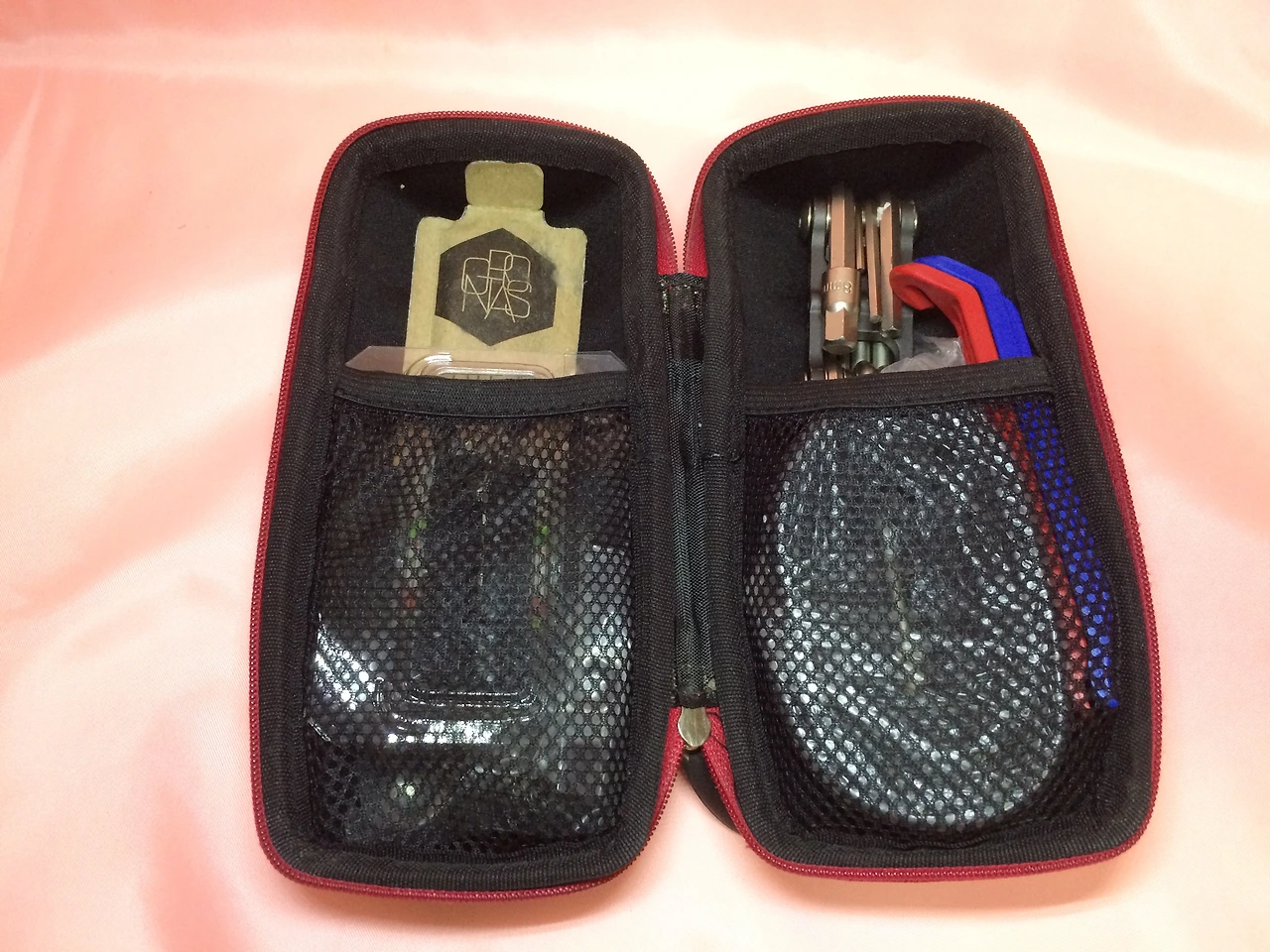 공구통에 주로 넣어두는 것은 펑크패치, 자전거용 멀티 툴, 여분의 자전거 튜브, 체인 링크, 타이어 주걱, 클릿 볼트, 그리고 행어 등이다.