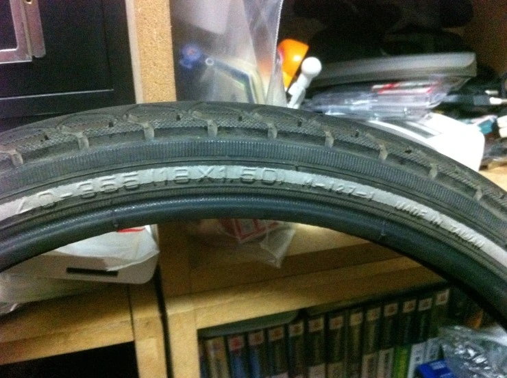 타이어를 빙 둘러서 잘 살펴보면 40-355 (18 X1.50) M-137-1 MADE IN TAIWAN이라 쓰여 있다.