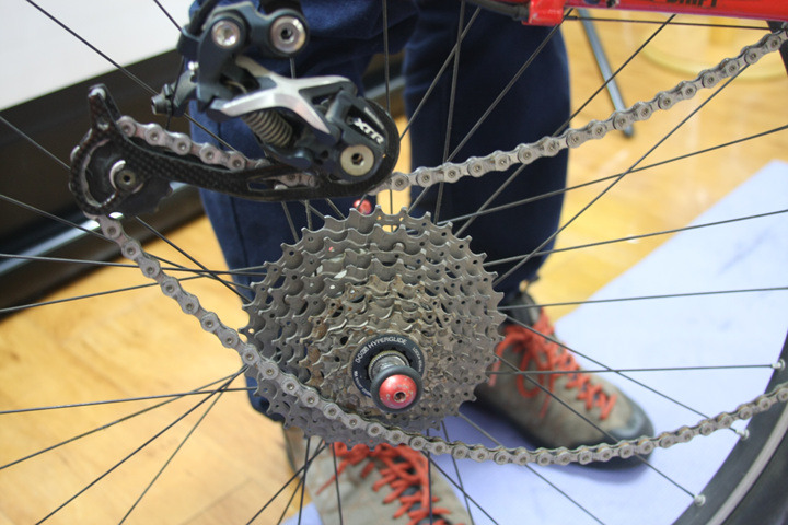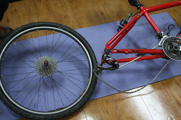 6. 뒷 변속기가 망가지거나 행어가 부러질 경우는 체인 툴로 체인을 분리하여 변속기를 떼어낸 후 짧게 결합하여 이어주면 주행이 가능하다.