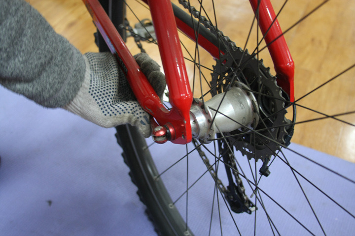 가장 먼저 해야 할 것은 펑크 난 바퀴를 자전거 몸체(프레임)에서 떼어내는 것이다. 바퀴를 분리하지 않고 튜브만 꺼내서 구멍 난 부분을 찾아서 펑크패치만 하는 방법도 있지만 QR레버로 된 자전거 바퀴는 탈거 해서 튜브를 교환하는 것이 빠르고 정확하다.