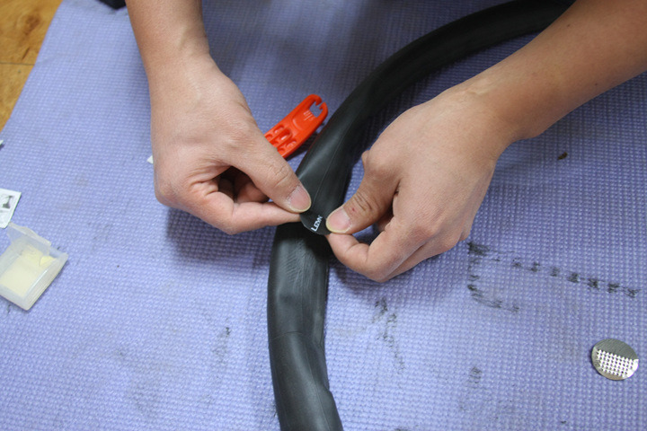 Tip. 나는 항상 타이어 회사의 상표 부분을 튜브 밸브 쪽에 위치시켜 놓기 때문에 튜브의 펑크패치 위치를 추적해서 타이어의 펑크 난 부분을 찾기 쉽다. 덤으로 이렇게 하면 휠도 정렬된 느낌이라 더 이뻐 보인다.