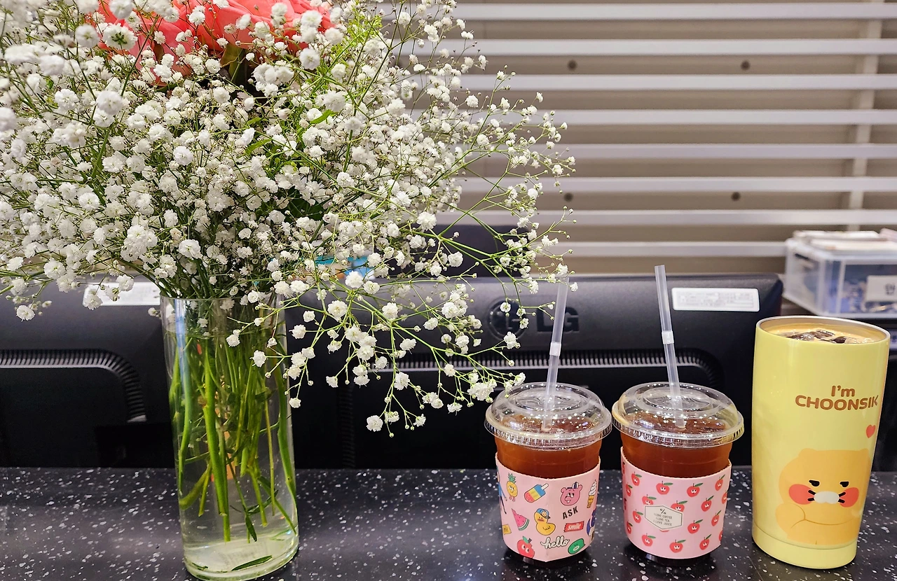 "너무 고마워서 대접하려고," 하며 직원들 커피까지 사 주셨다.