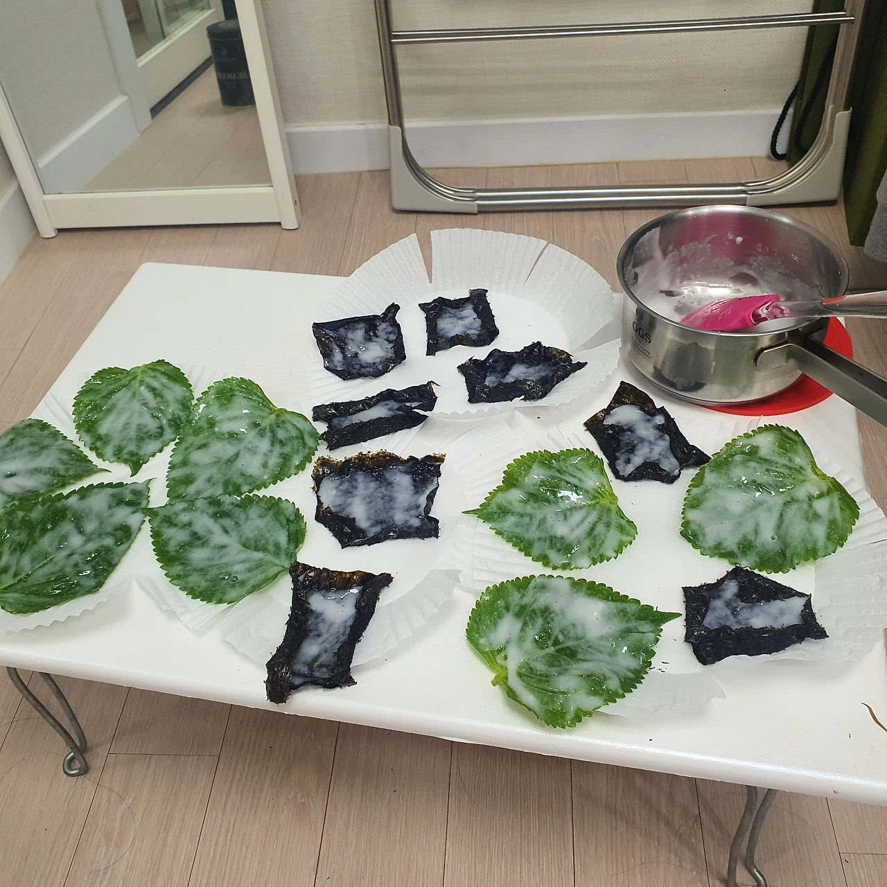 찹쌀풀 바르고 말리는 중