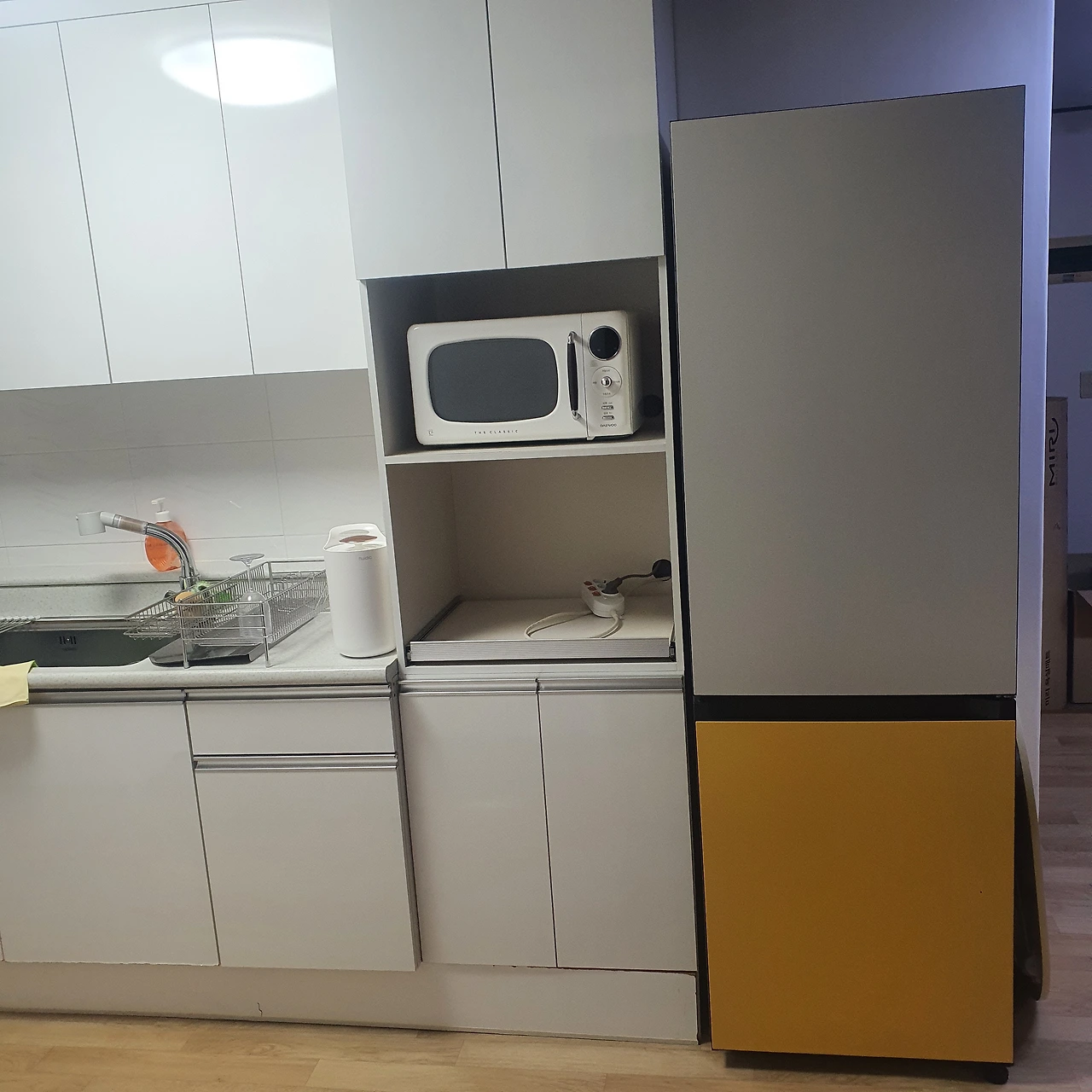 냉장고는 혼자살기에 너무 크지 않은 333L로, 세탁기도 이불 하나 정도는 빨 수 있는 13KG으로 구입했다. 그래도 나름 욕심내서 둘 다 S전자 제품으로 구매했다. 냉장고는 진짜 고민 많이 했는데 문짝의 색상을 고를 수 있는 제품으로 샀다. 정가는 이 제품이 훨씬 비싸지만 세일을 많이 해서 일반 냉장고보다 3만 원 정도 비싼 수준이었다. 핫딜가라 냉장고와 세탁기를 합해서 90만 원 정도에 살 수 있었다.
