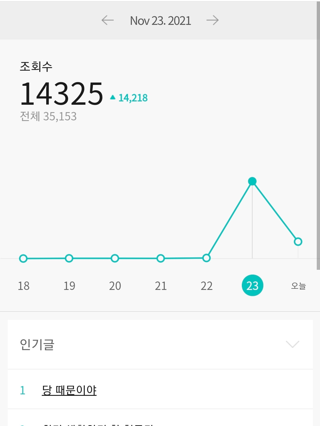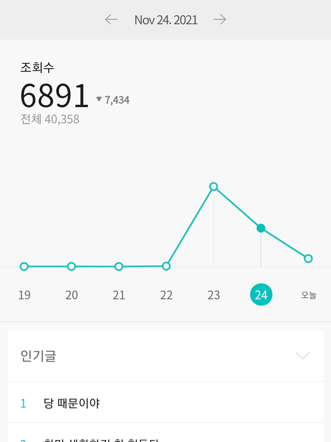 그래서 글태기를 깨 보려고 뭐라도 적고 싶어서 적은 글이 다음 메인에 노출되면서 조회수가 폭발했다.