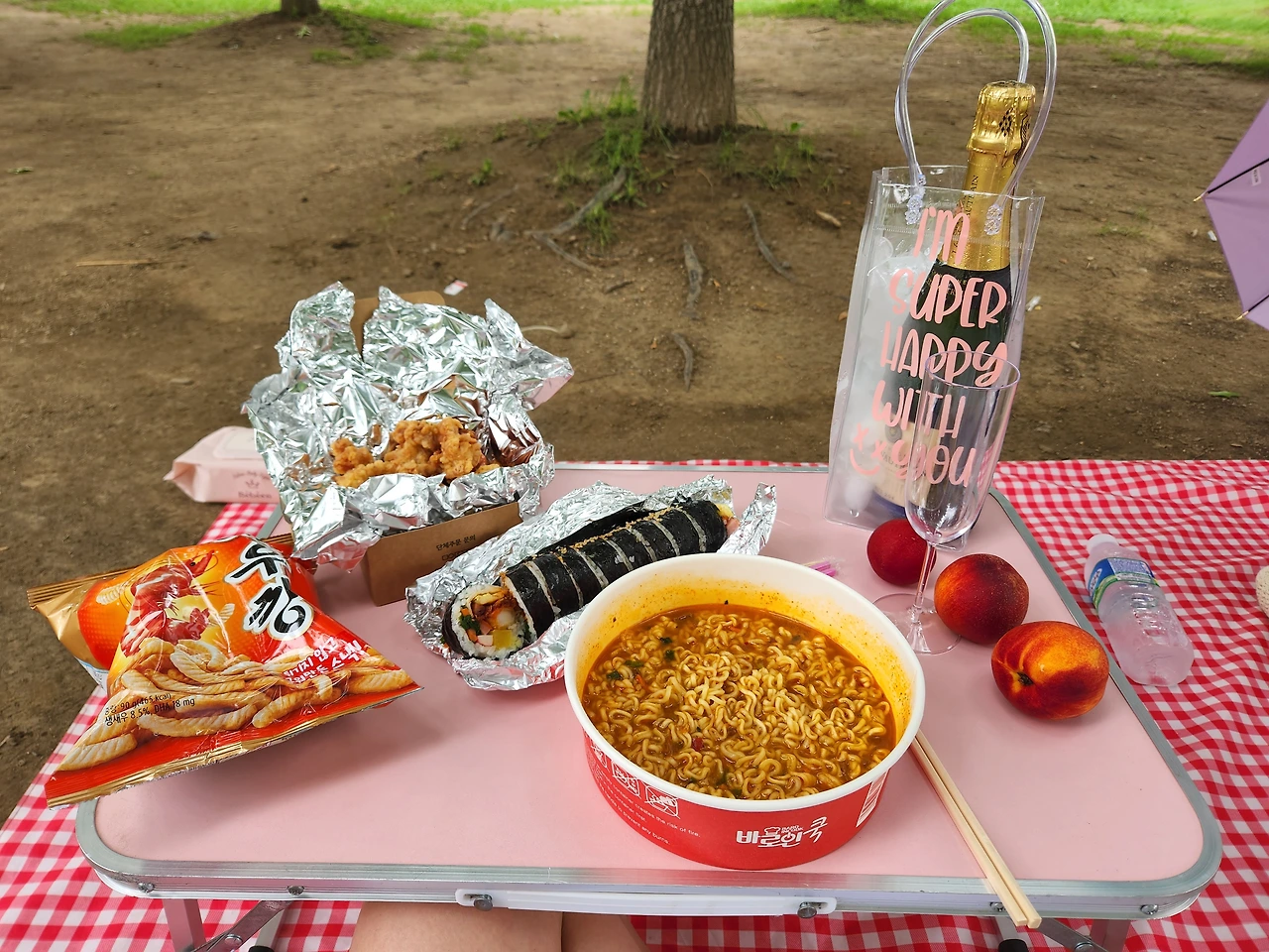 한강공원 편의점에서 라면까지 끓이면 진수성찬이다.