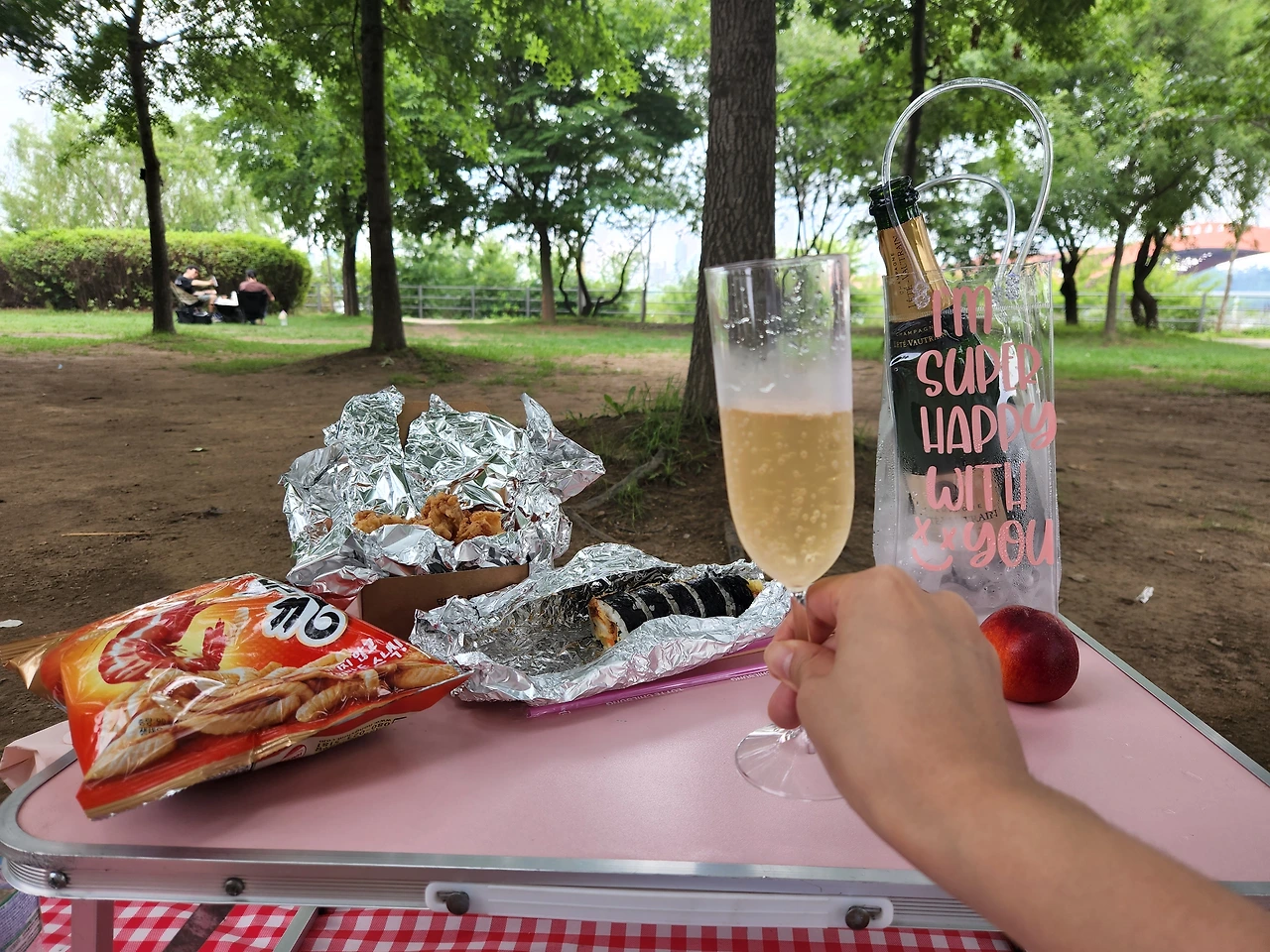 한강에서 혼자 즐기는 샴페인도 너무 즐겁다.