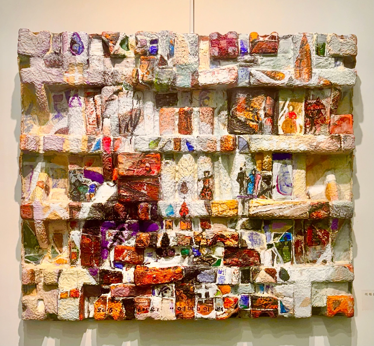 얼마나 올라가야 할지, 어디로 올라가야 하는지 알 수 없는, 그냥 벽이라고 하기엔 그 앞에 그저 멈춰 서서는 안 되는 공간같이 다가온다. 하층부에는 군데군데 '아래아를 가진 하', 하늘천', 어말어미가 없는 글자 등이 잔해같이 쌓여 오래된 이야기임을 알린다.