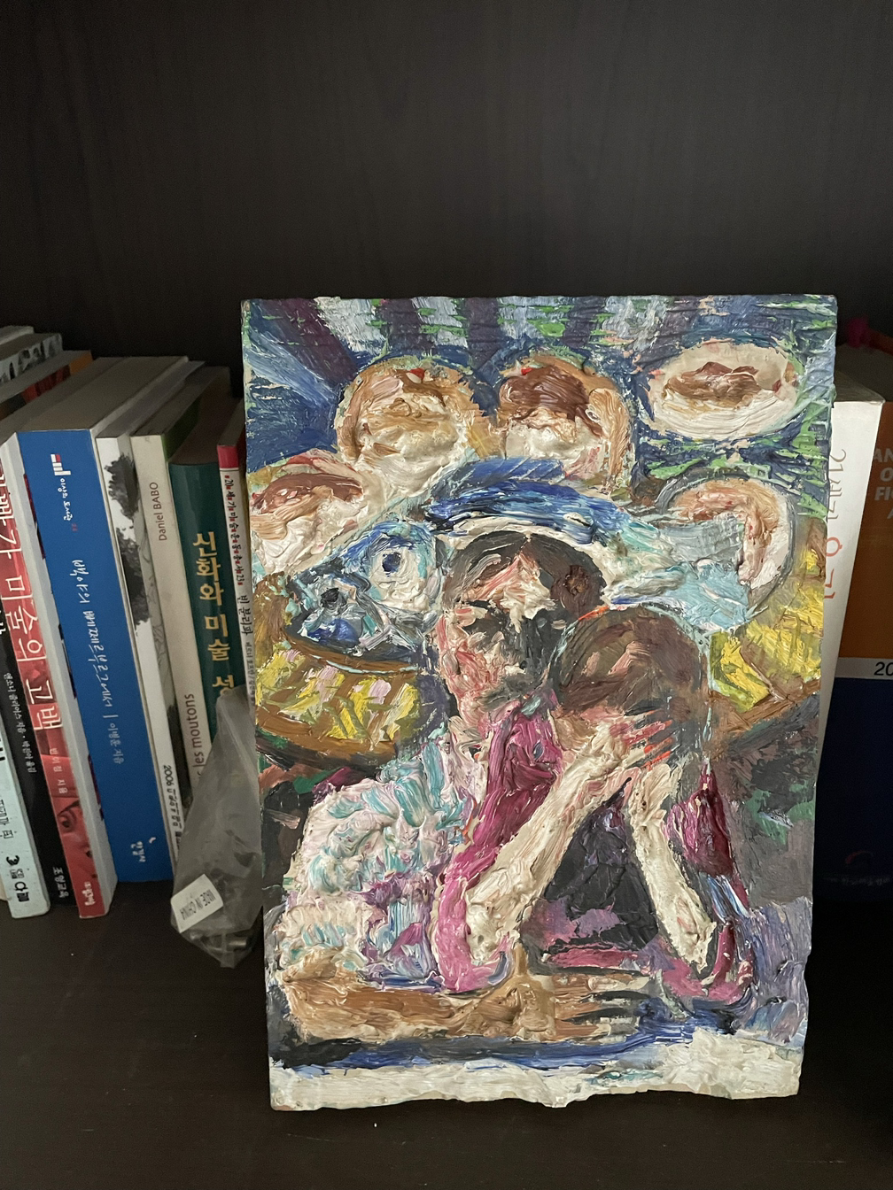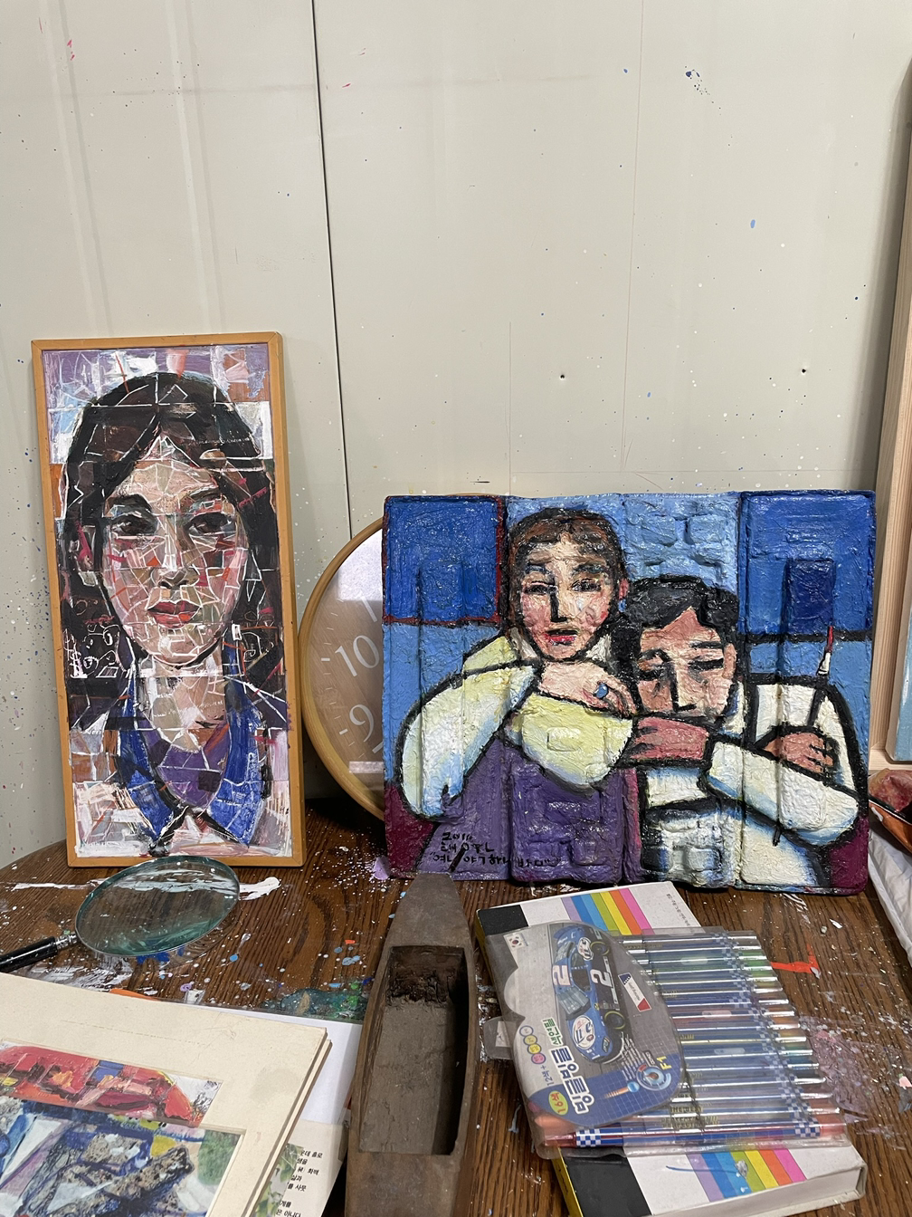 오래 짊어진 생계의 짐. 마음껏 그리고 마음껏 전시하기에는 고려해야 할 가족의 생활이 저 어깨의 짐이었을 것 같아서 우리는 미안해졌다.
