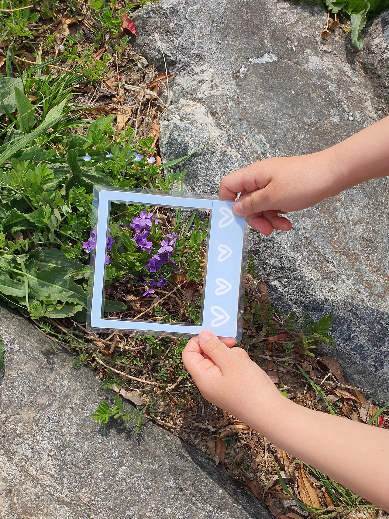 "이 사진틀을 가지고 돌아다니면서 봄을 찾고 사진을 찍는 거야."