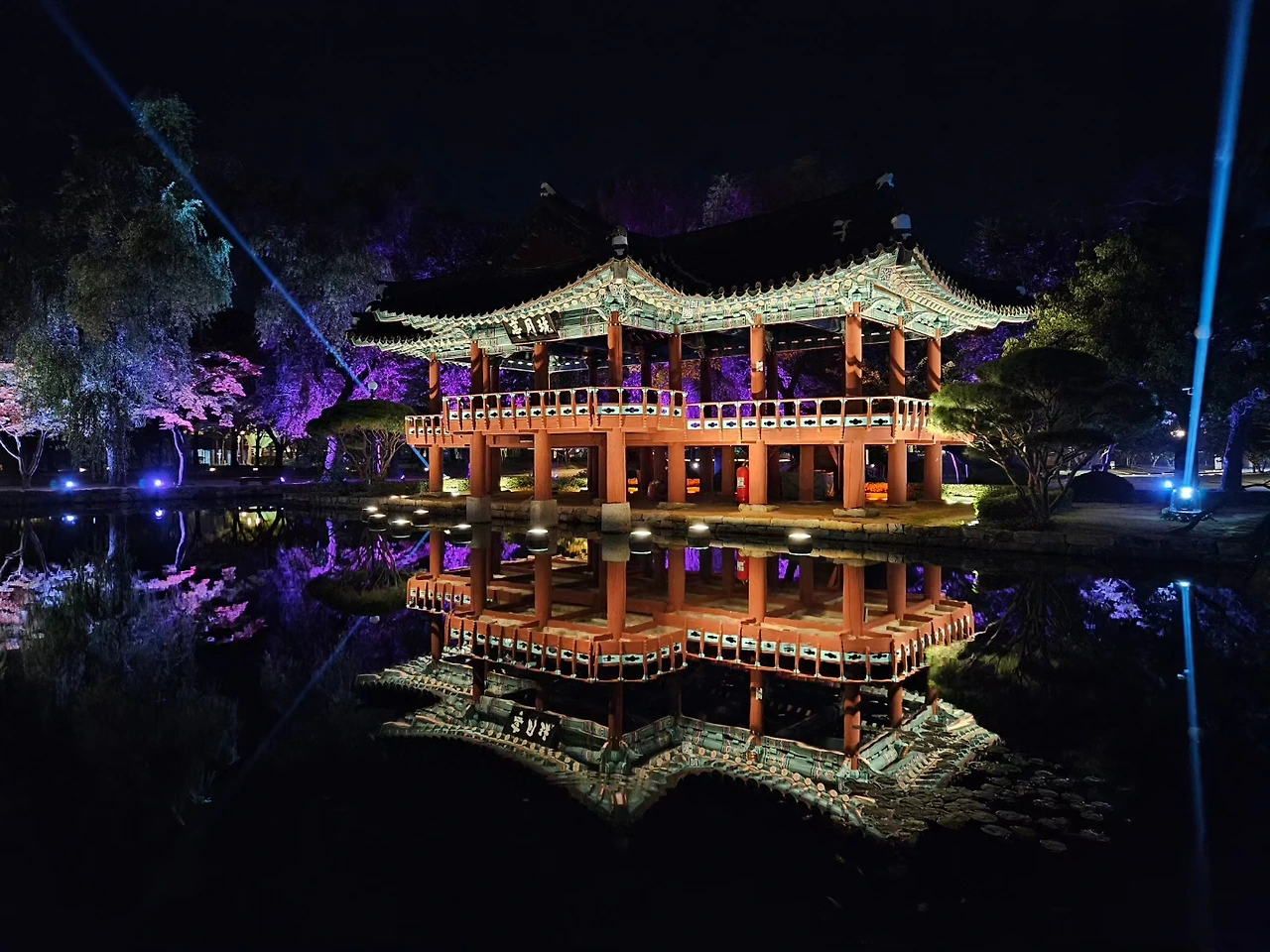 수많은 조명이 나무와 전각들을 색색들이 곱게 물들이며 현혹하고, 현대적인 색과 감각을 입혀 계속 카메라 셔터를 누르게 했다.