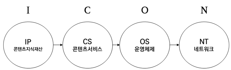 이러한 혼란을 해결할 수 방법으로, 새로운 가치사슬의 모델을 제안하고자 한다. 바로 IP(콘텐츠IP)-CS(콘텐츠서비스)-OS(운영체제)-NT(네트워크)로 구성되는 ICON 가치사슬 모델이다. 기존의 콘텐츠를 IP와 콘텐츠 서비스로 세분화하는 것을 핵심으로 하되, 기존의 '디바이스(D)'로 이야기 되던 단계에서 기기보다 안드로이드, 타이젠 등의 '마켓'을 제공하는 OS 수준의 플랫폼화에 주목하는 것이다.