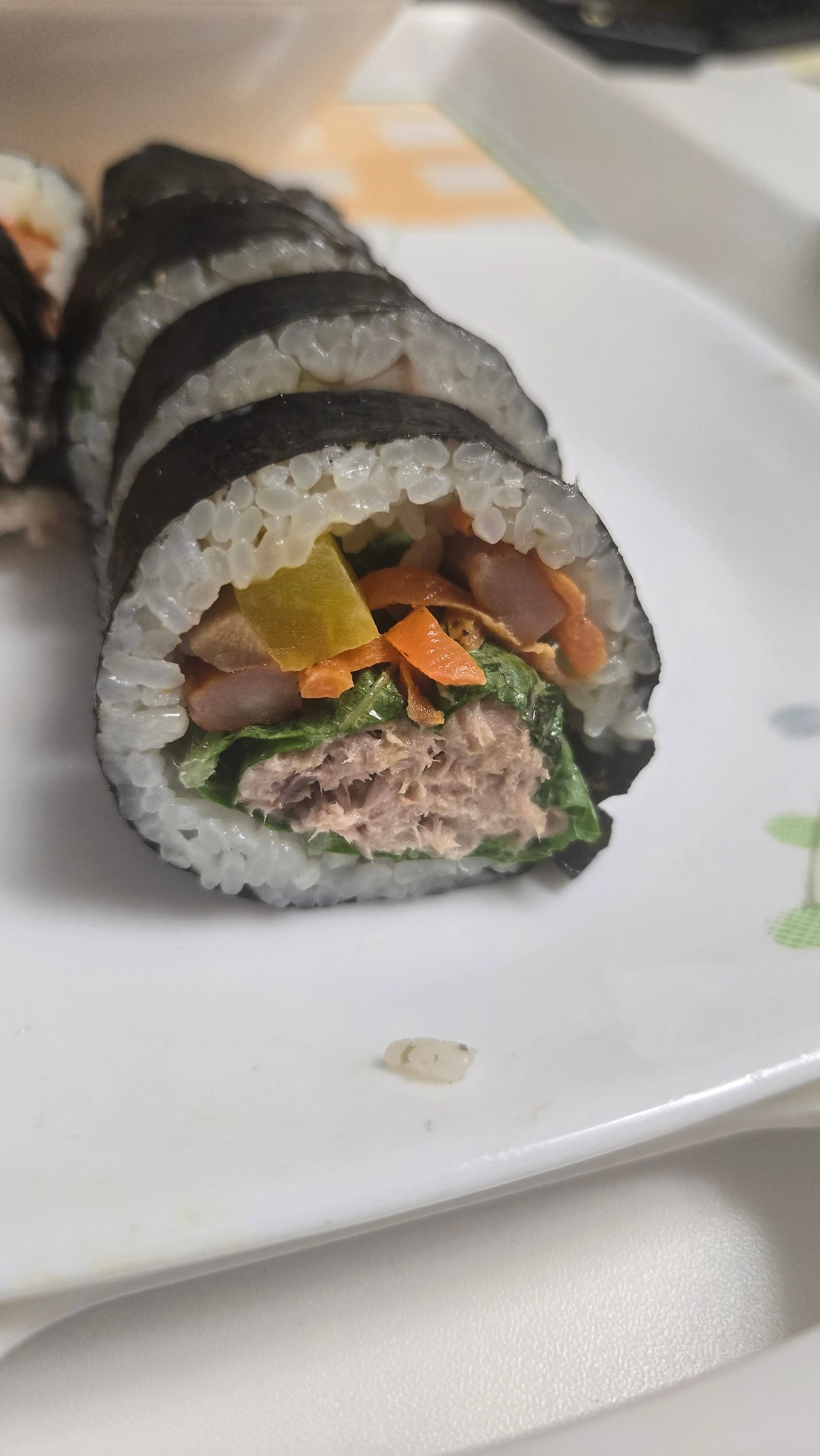 집이니까 가능한 참치한캔 들어간 참치김밥한줄:-)