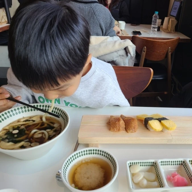 방학 내 초밥 나오는 책을 한참 보더니 '초밥 초밥' 노래 불러서 초밥집도 다녀왔다. 아이는 없고 어른들만 많은 것도 신기한 눈치 두리번두리번거리며 잘도 먹었다.