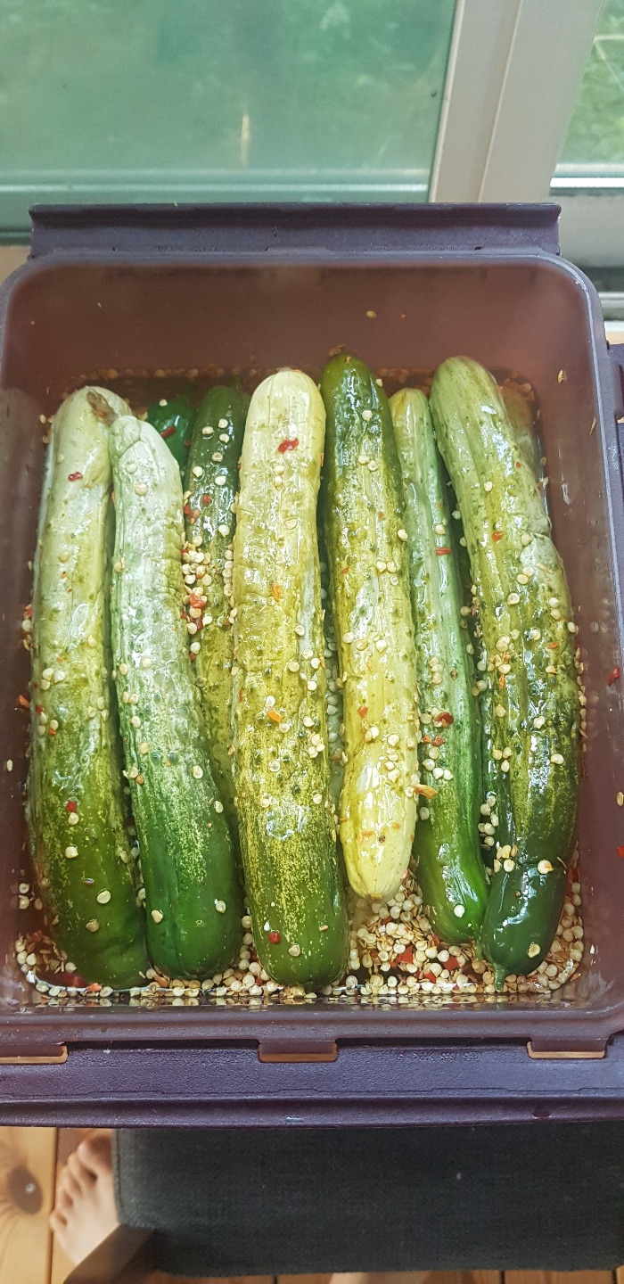 *사흘 정도 옮겨주면 고루 물이 생기고 결국 오이에서 물이 나와서 다 잠긴다.