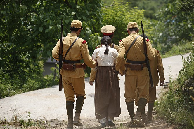 우선 <귀향>의 가장 큰 문제는 캐릭터 설정이다. 주인공 소녀의 캐릭터가 너무나도 전형적이다. 과연 <귀향>의 주인공으로 나오는 소녀인 '정민'에 대해서 말할 부분이 많을까? 단순히 외동딸이라는 것 말고는 거의 전무하다. 그렇기에 주인공인 정민에게 영화 내부에서만 봤을 때는 감정을 이입할 수 있는 지점이 많지 않다고 생각한다. 초반 10분은 한 인물의 캐릭터를 조성하기에 충분하다고 생각하는데, 그 시간이 단순하게 한 정민의 특별할 것 없는 일상을 보여주는 것에 그친다. 심지어 정민의 일상을 보여주는 그 장면 조차도 너무나 상투적이다. 정민이 아버지에게 가서 안기는 장면, 어머니에게 혼 나는 장면, 그리고 정민이 잠든 사이 어머니와 아버지가 이야기를 나누는 장면 모두 다 어디서 본 법한 장면들이다. 조금 더 개성 있는 인물로서 정민을 묘사했으면 어땠을까 하는 아쉬움이 있다. 또한 일본군을 묘사하는 방식도 개인적으로 아쉬웠다. 단순히 "우리가 생각하는 일본군" 그 자체의 모습을 벗어나지 못했다고 생각한다. 이렇듯이 영화 내의 캐릭터를 구축하는 데 있어서 깊이가 있지 않아서 아쉬웠다. 게다가 그 캐릭터를 연기하는 배우들의 연기 또한 개인적으로 약간 아쉬움으로 남는다. 특히 가장 아쉬운 부분은 초반 부에 나오는 가족 씬에서의 연기인데, 이 부분에서는 특히 정민의 어머니와 아버지를 연기한 배우님의 어색한 연기가 눈에 보일 정도.