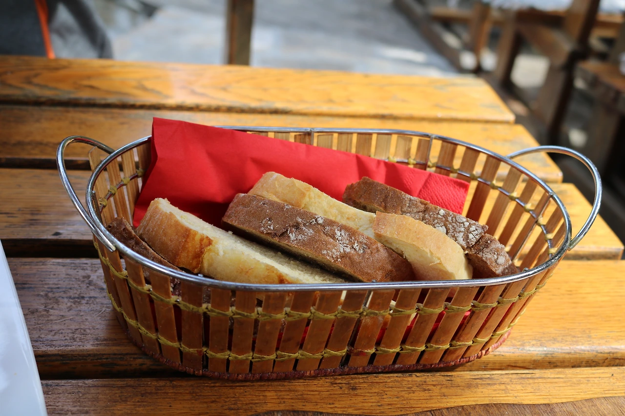 한참을 넋을 잃고 풍경에 심취해 있는데 먹음직스럽게 생긴 식전 빵을 가져다주신다. 작년 신혼여행으로 갔던 프랑스와 스페인에서도 그랬듯이, 유럽에서는 우리가 주문하지 않았음에도 식당에서 내어주는 식전 빵을 먹으면 돈을 지불해야 한다는 것. 사실 작년에는 유럽이 처음이었던지라 당연히 공짜인 줄 알고 열심히 먹었는데, 나중에 계산서에 우리가 주문하지 않은 내용이 적혀있길래 물어보았더니 '식전 빵'이라고 쿨하게 알려주셨더랬다.