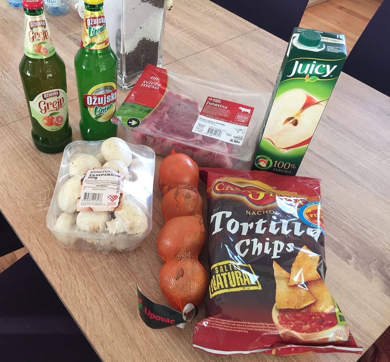 레몬맛과 자몽맛 두 가지 모두를 맛보고자 오주스코 맥주를 두 병, 아침에 빵과 함께 마실 애플주스도 샀는데 주스마저도 다양한 크로아티아의 슈퍼마켓에서 그냥 감에 의존해 맛있게 생긴 느낌의 주스를 골랐었다. 결과는 매우 성공적. 100% 리얼 사과가 들어갔는지 어떤지는 잘 모르겠지만 내 입에 맛있다면 그거로 충분한 거 아니겠는가. 어쨌든 정말 맛있는 애플주스였다. 그리고 오늘의 저녁 메뉴인 스테이크를 위해서 버섯과 양파도 구매했다. 버섯은 그냥 평범한 버섯이었으나, 양파가... 정말 눈물이 나게 이렇게 심하게 매운 양파는 태어나서 처음이다. 엄청나게 딱딱해서 손질이 어려운 것은 물론이오, 눈물 나게 맵다. 한참을 울었네, 허허. 주전부리용 과자도 한 봉지 골라보았고, 물론 주인공인 스테이크용 소고기도 샀다. 크로아티아에서 육류를 구입하기는 정말 누워서 떡먹기다. 글자를 몰라도 전혀 문제 될 것은 없다. 모든 육류가 담긴 팩 위에는 그림이 그려져 있으니 말이다. 소고기는 소 그림이, 돼지고기는 돼지 그림이 그려져 있고 그게 전부가 아니다. 어떤 부위를 잘라서 담아놓은 것인지까지 색상으로 표시가 되어있다는 점. 요리조리 잘 살피며 소의 등심을 골랐고, 그렇게 해서 오늘 저녁의 메인메뉴는 크로아티아 산 소고기 등심 스테이크 되시겠습니다.