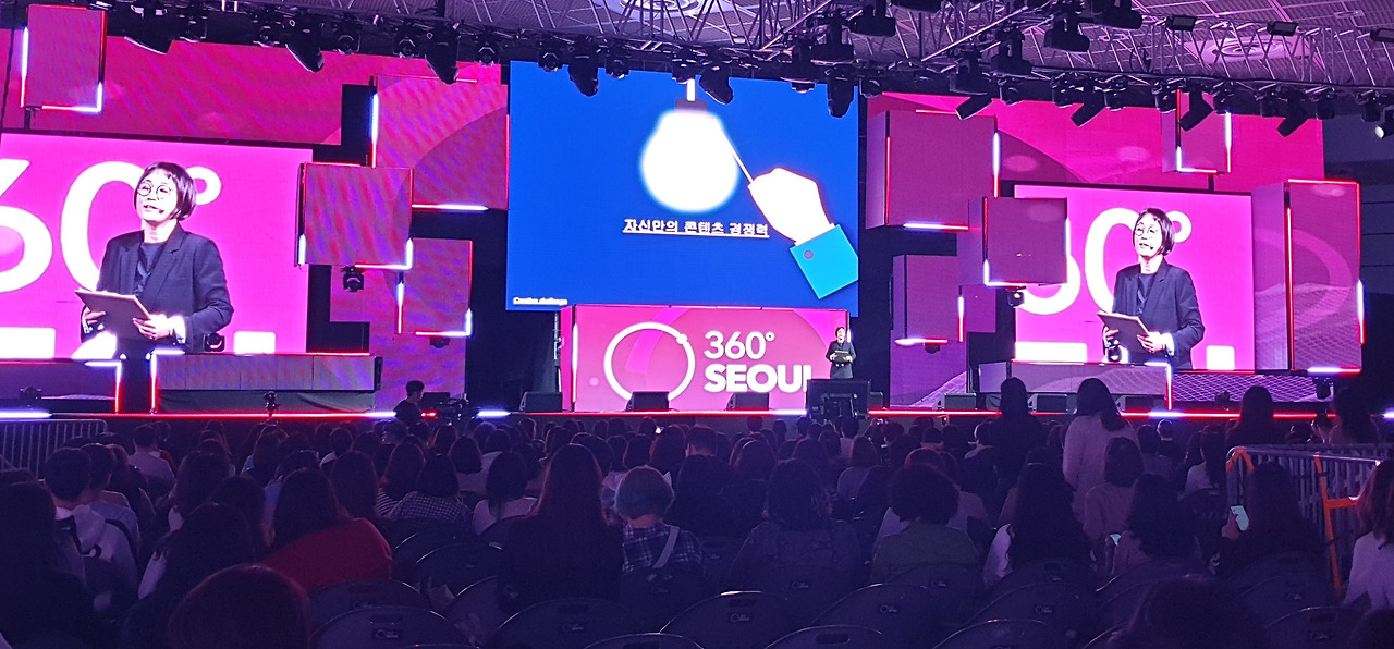 코엑스에서 열린 360˚ Seoul 컨퍼런스에서 강연중인 컨텐츠랩비보 송은이 대표