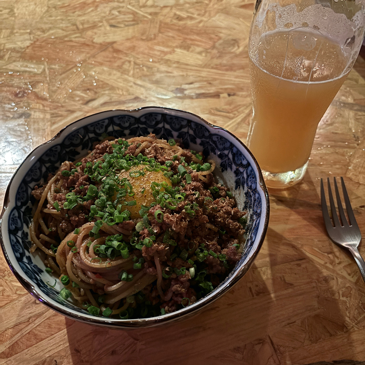 반 정도 남은 첫 잔을 확인하고는 음식과 함께 다음 맥주를 주문하기로 한다. 음식은 사천식 라구 파스타로 정했다. 다진 고기를 넣고 끓인 라구 소스에 얼얼하고 매콤한 향신료 풍미가 더해져 중독성 있는 파스타다. 토핑된 계란 노른자를 터뜨려서 비비면 고소한 꾸덕함까지 코팅된 맛 폭탄이 된다. 여기에 어울릴만한 맥주가… 잘 모르겠지만 일단 IPA로 넘어가기로 한다. 홉의 쓴맛이 매운맛을 상쇄해 준다는 이야기를 어디서 들어본 것도 같다. 탭 리스트를 보니 IPA 두 종류가 있다. 이파리 IPA와 오딧세이 IPA_탱자.