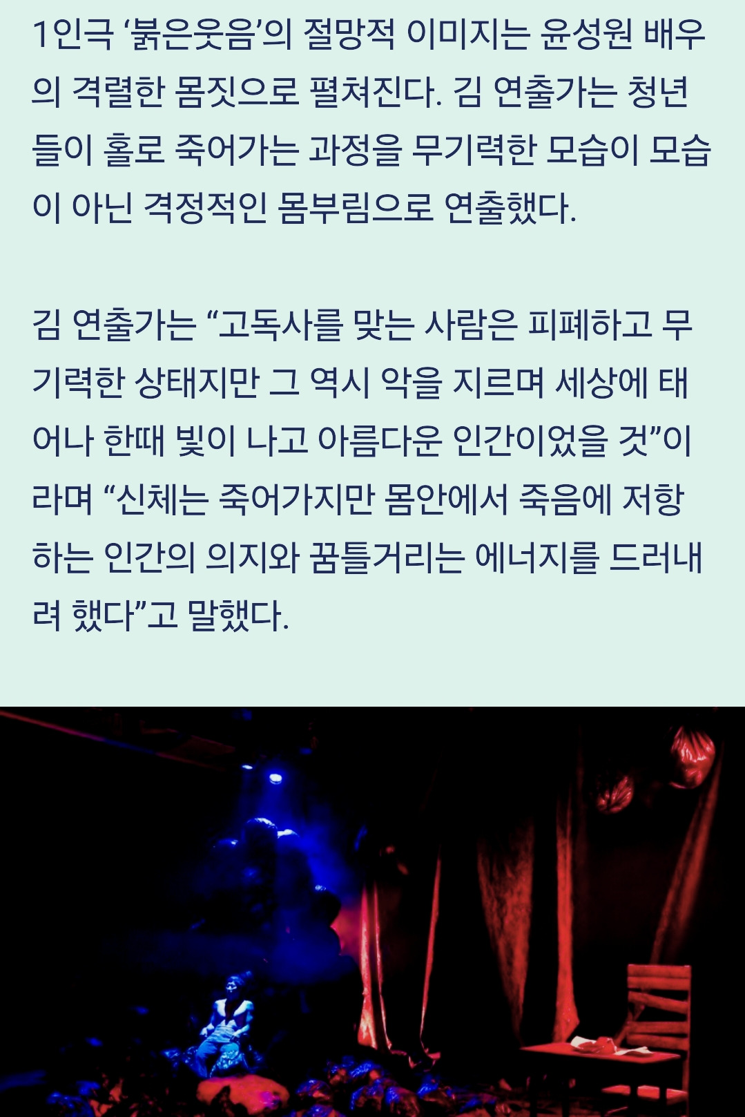 #레오니트안트레예프의 붉은웃음을 청년 고독사와 연결한 1인극.