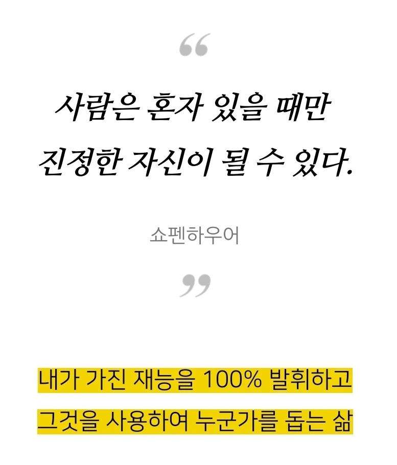 진정한 혼자의 시간을 나눔의 근거로 채워가는 삶.