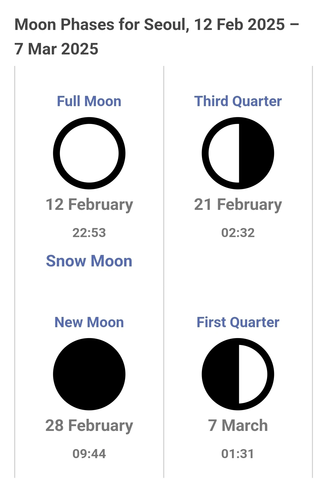 달의 모양에 따른 이름과 특징을 알아보고, 25.2.12 정월 대보름 이후 보름달은