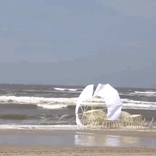 공대에서 물리학을 공부하다 자퇴한 그는, 1990년부터 '키네틱 아트 Kinetic Art'에 주력한 결과, 모래밭에서 스스로 걷는 "해변동물 Strandbeest" 시리즈를 창조해냈죠.