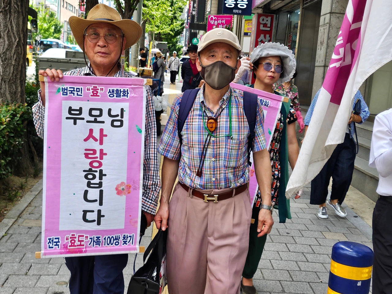 생소한 광경에 놀라던 시민들의 눈빛이 이내 따스한 미소로 변하던 그 순간을 잊을 수 없습니다. 그 작은 떨림이 마중물이 되어, 저는 4반세기 동안 '효(孝) 생각 시민운동'이라는 외길을 걸어오고 있습니다.
