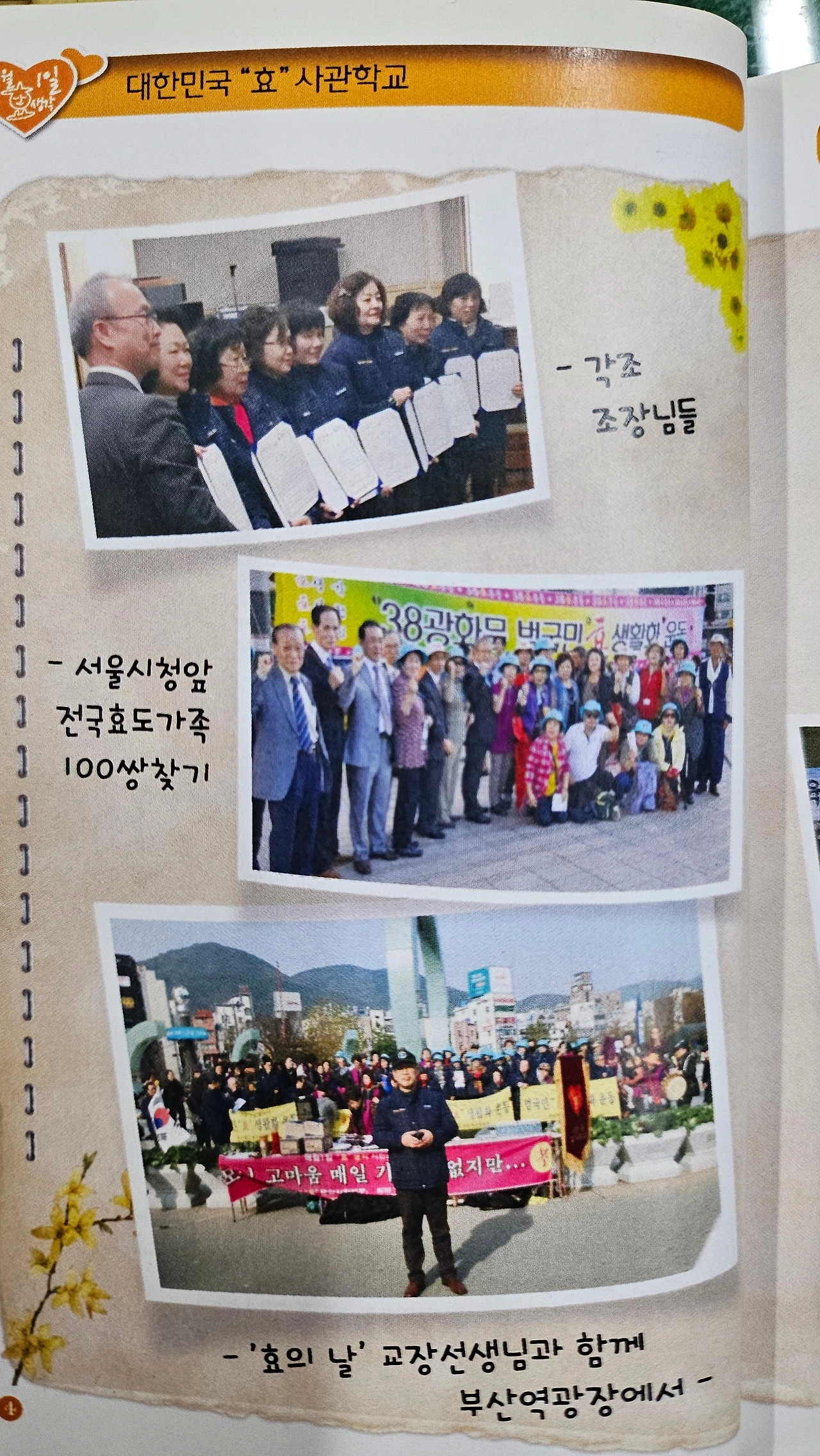 교직을 마친 이후에도 멈추지 않고, 오히려 더 낮은 곳으로 향하며 봉사의 길을 걸어오신 분. 효사관학교에 입교한 이후에는 자신의 남은 삶을 온전히 효운동에 바치듯 헌신해 오신 분이다.